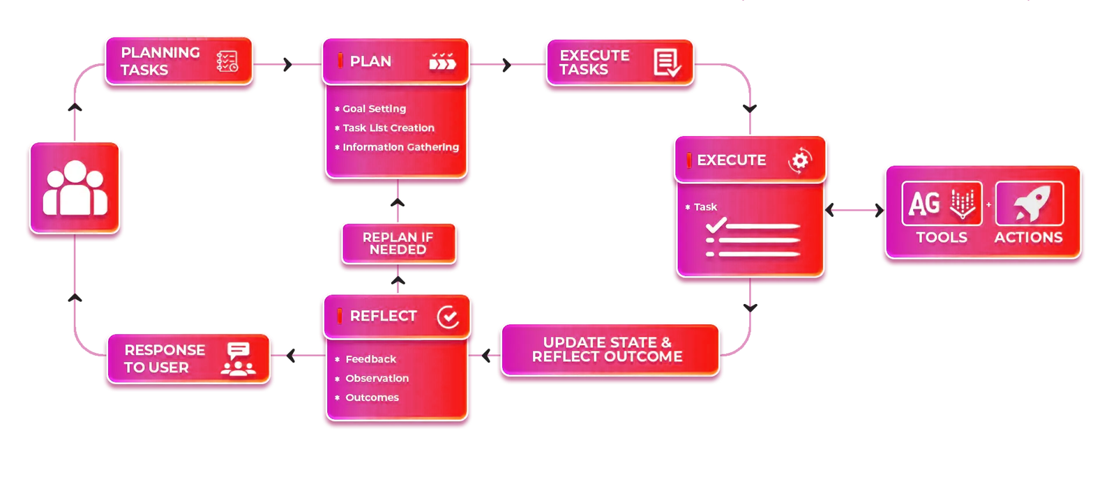 With reinforcement learning and data driven enhancements, our AI agents continuously improve their performance. They adapt to new challenges, optimize workflows, and evolve to meet ever-changing user demands.